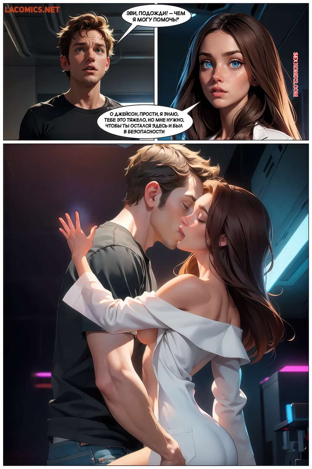 Порно комикс Генезис. Часть 7. G3nysis. G3nysis Парень с девушкой остались наедине и решили воспользоваться моментом по полной. Они стали страстно целоваться, но их уединение нарушил сигнал о чрезвычайной ситуации.
